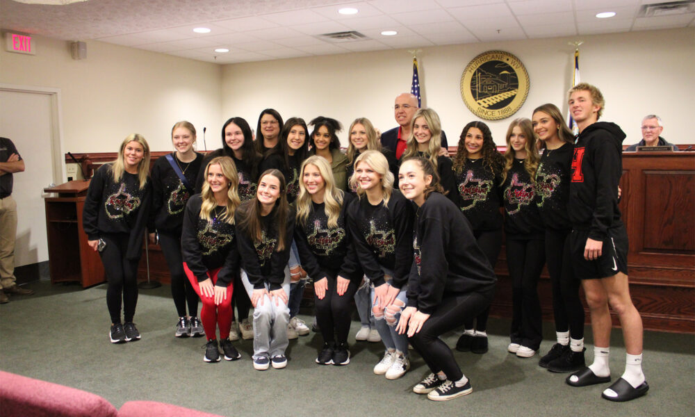 The Hurricane High Cheerleading Team was honored at the January 2 city council meeting for winning its first ever State Championship. The team is composed of seniors Brynn Beckman, Makayla Bennett, Maddie Conley, Katie Gabhart, Taylor Thompson, Shayden Griffith, Haylee Osborne and Kennedy Randle; juniors Carly Dingess, Pressley Adkins, Haley Vedral, Owen Woodburn, Gracie Thornton and Autianna Hollins; sophomores Faith Taylor, Bella Whittington, Kennedy Warner, Ava Ison, Jenna Simms and Kaylee Eldridge; and freshmen Cassidy Davis, Amyah Persinger, Kendra Rainey and Ella Humberston.
