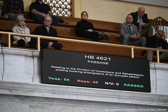 House Bill 4621 was passed by a vote of 54 to 46 following a lengthy debate. The bill prohibits the public release of mugshots (booking photos) following the arrest of an individual. Mugshots are currently considered public information.