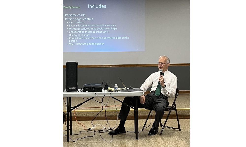 Genealogist Paul Hinman was the special guest speaker for the quarterly meeting of the Upper Vandalia Historical Society, which was held on Sunday, April 28, at Bancroft Church of God Mission. During his presentation, Hinman discussed the genealogical website FamilySearch, explaining its many features and how to use them.