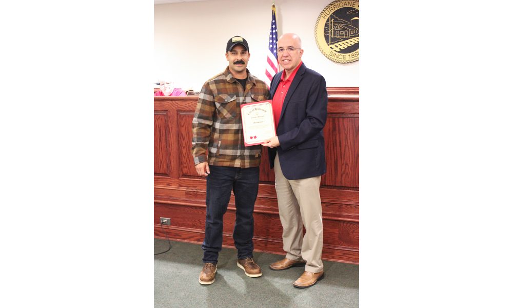 Steve Goff was recognized for his twelve and a half years of service on city council. Edwards stated that he drafted Goff to fill an unexpected vacancy on council. During Goff’s tenure on council, the City has been enabled to develop Hurricane Bridge Park and to construct a new Hurricane Fire Station. The Hurricane Volunteer Fire Department has transitioned to add paid-firefighter personnel.
