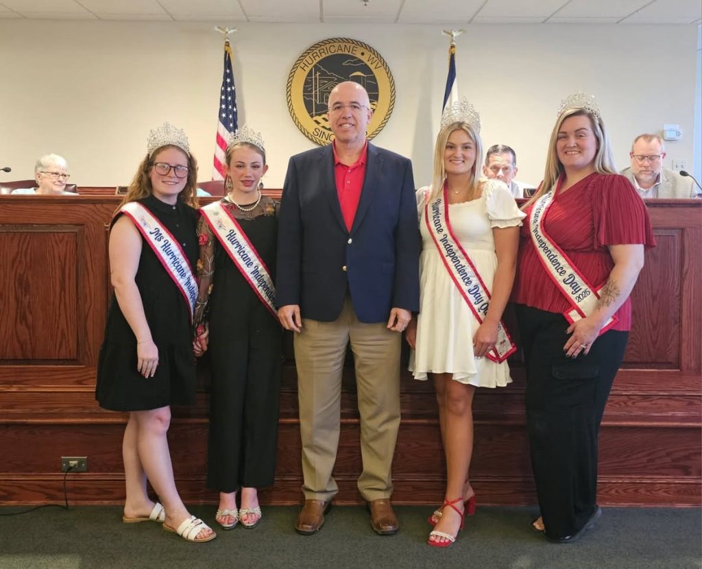 (l-r): Ms. Hurricane Independence Day, Emilee Butcher; Pre-Teen Hurricane Independence Day, Paisley Mitchell; Mayor Edwards; Hurricane Independence Day Queen, Delaney Roberts; and Cathy Garvin, Mrs. Hurricane Independence Day.