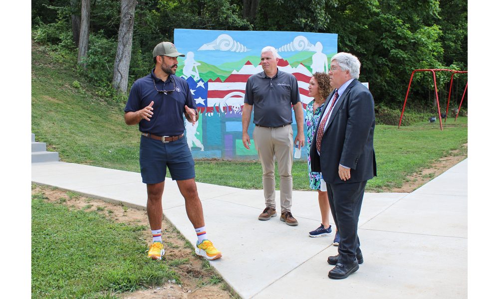 On Friday, July 11, Governor Patrick Morrisey visited Hurricane City Park to hear the story of the creation of the Meeks Mountain Trails from the very people who made the trail system emerge from a vision of 2 miles in 5 years followed by 5 more miles every 2 years for 6 years into a reality of more than thirty miles of trails for biking, hiking and running. The numbers 2, 5, 5, 2 and 6 are, by design, Hurricane’s zip code.