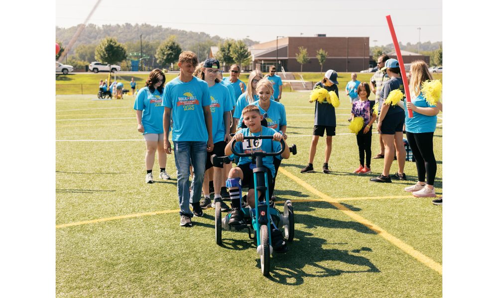 Hurricane Mayor Scott Edwards, the Marshall University Cheerleaders, and the Dirty Birds baseball team mascot were present to cheer the children and their families as they walked and rolled to and through the finish line in wheelchairs, riding adaptive bikes, using gait trainers, scooters, or strollers — all while raising awareness and funds for foundation. Every child received a medal and got to enjoy the Family Fun Day after the walk.