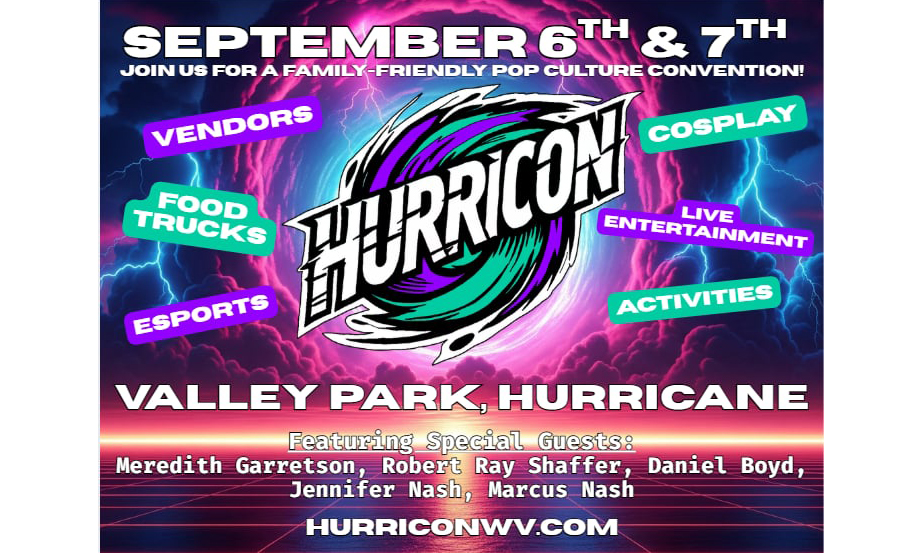 HurriCon, Putnam County’s largest Pop Culture Convention, will be making its debut on Saturday, September 6 from (10am – 7pm) and Sunday, September 7 (10am – 6pm) at Valley Park Conference Center in Hurricane.