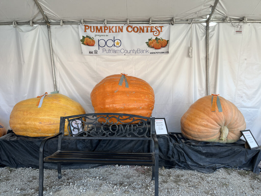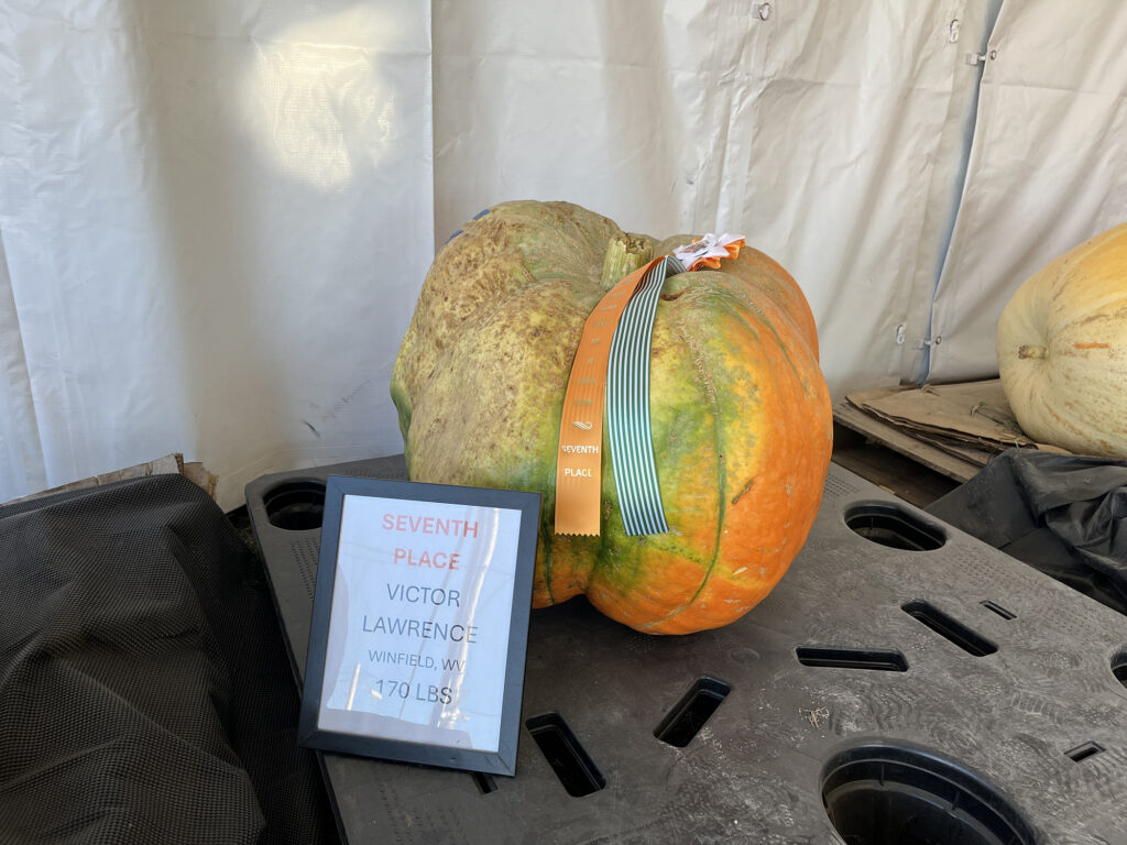 Winners of the big pumpkin contest were First Place – Brandon McClung of Ona, 718 lbs.; Second Place – Ronnie Midkiff of Beaver, 590 lbs.; Third Place – Wilburn Thompson of Fort Gay, 558 lbs.; Fourth Place – Abigail Shilt of Mason, 380 lbs.; Fifth Place – Samantha Merritt of Fort Gay, 258 lbs.; Sixth Place – Logan Allen of Culloden, 186 lbs.; Seventh Place – Victor Lawrence of Winfield, 170 lbs.; Eighth Place – Dave Allen of Culloden, 168 lbs.; Ninth Place – Makala Elmore of Clendenin, 122 lbs.; Ten Place – Michelle Linville of Milton, 92 lbs.; Tabitha Linville of Milton, 86 lbs.; Russell Gray of Lesage, 80 lbs.; Mathew Courts of Milton, 70 lbs.; Justin Conner of Milton, 70 lbs.