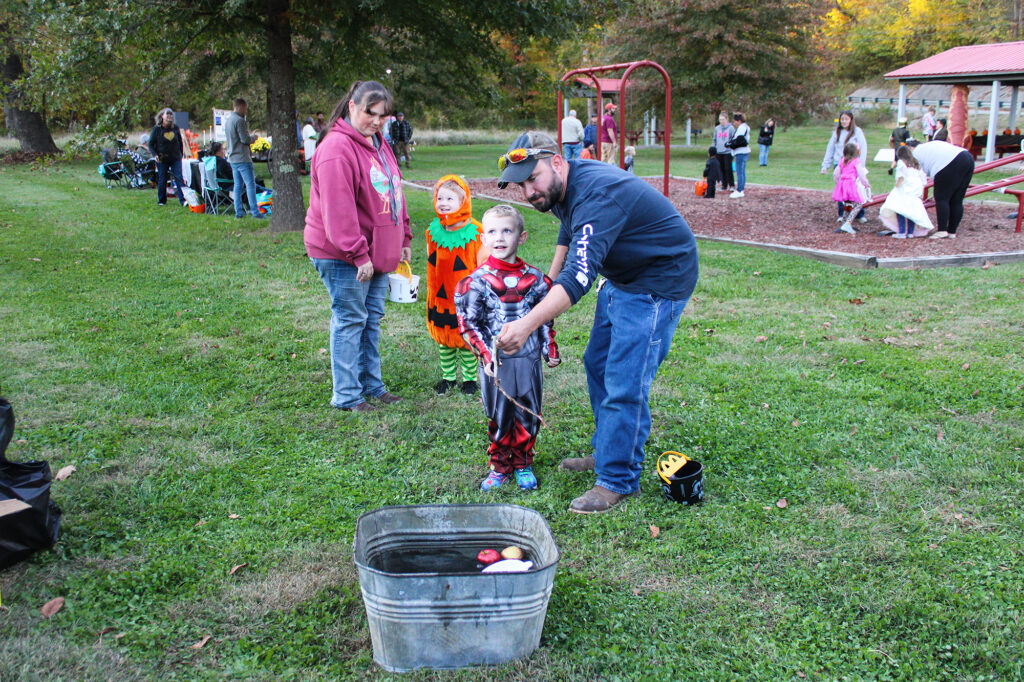 The Putnam County Fair had a booth at Harvest in the Grove which offered a modern-day version of bobbing for apples. Participants fished apples out of the tub with a funnel attached to a string – no biting required.
