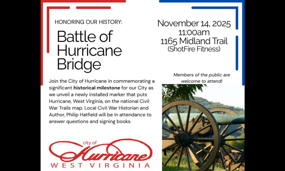City administration will host the unveiling with local author and Civil War expert Philip Hatfield who will be available to answer questions about the Battle of Hurricane Bridge.
