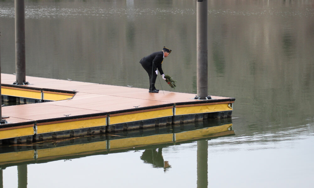 After the review of the events of December 7, 1941, Post 187 Commander Chris Gress laid a wreath upon the waters of the Kanawha in remembrance of those who perished in the attack.
