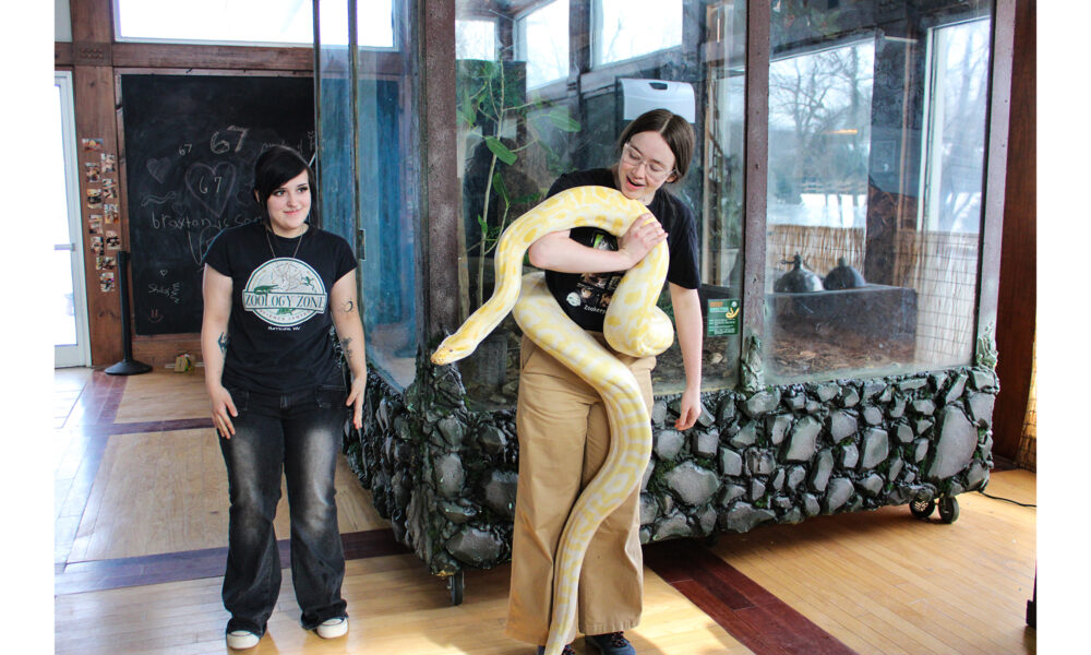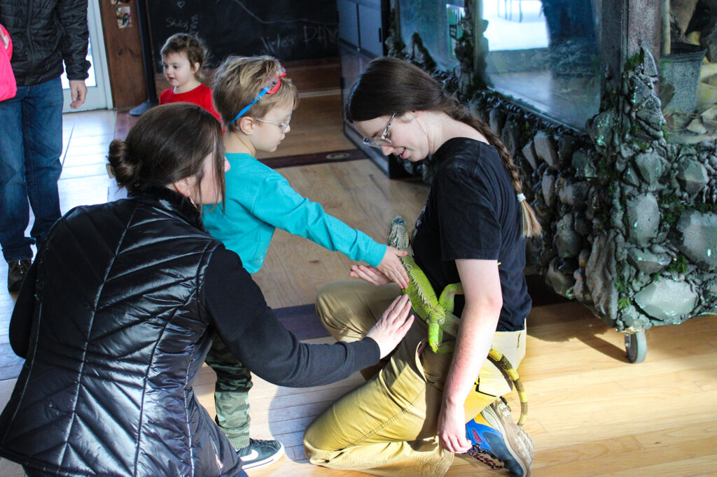 Zoology Zone Science Center at Valley Park was filled with excitement on Saturday, January 31, as the Center held a January Giants Event. The event allowed visitors to learn about the larger reptiles kept at the center. In addition to learning their weights and lengths, they had a chance to touch iguanas and Burmese pythons. Britney, the Burmese python, is 22 feet long, and one very large iguana is 6 feet long.