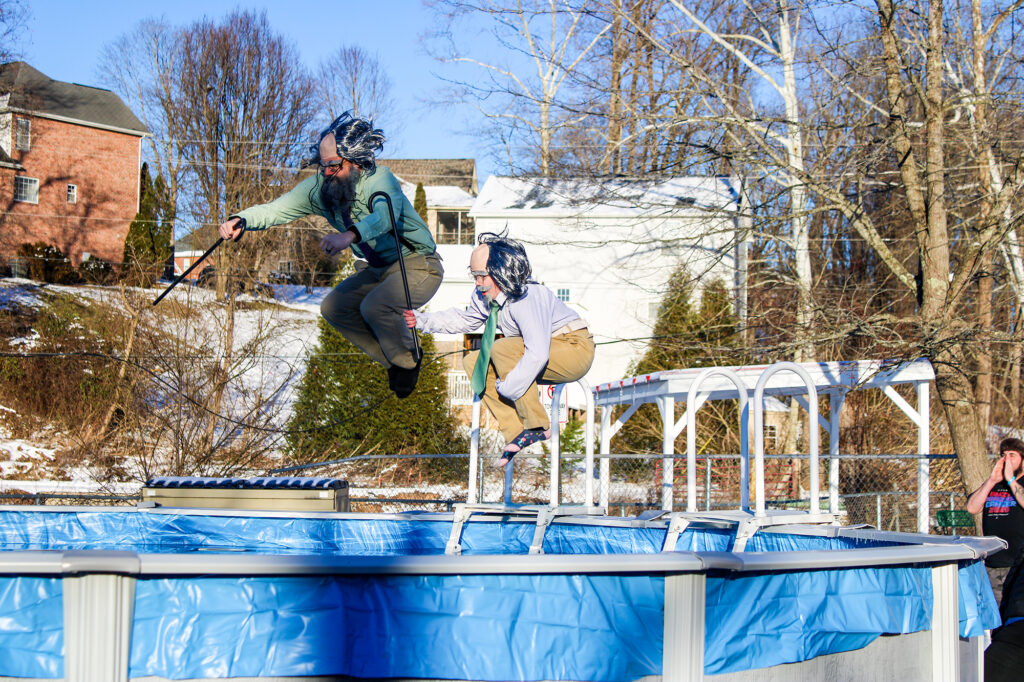 B the Bobs, the team costume contest winners, demonstrate perfect plunging form. (Photo courtesy of Hope Taylor)