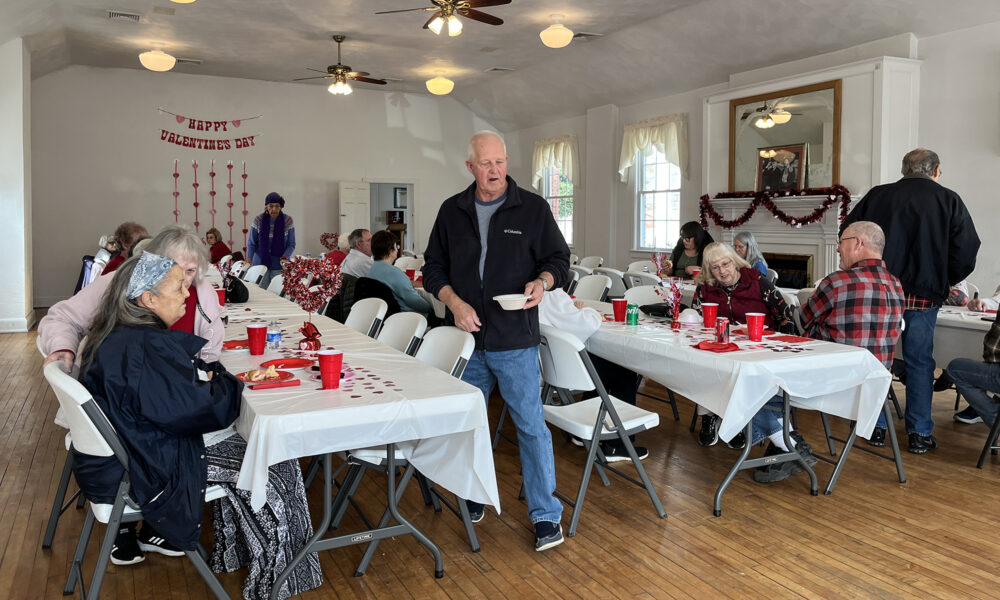 Senior citizens from Eleanor and surrounding communities got some love this past Saturday, February 14, when the town put on a special Valentine’s Day Luncheon just for them. Over seventy-five people showed up at the Homestead Room of the Eleanor Town Hall to enjoy friendship and fellowship. The menu featured a variety of soups, including chicken noodle, potato cheddar, Western bean, and vegetable beef, as well as chicken salad sandwiches, cornbread, rolls, and cookies.